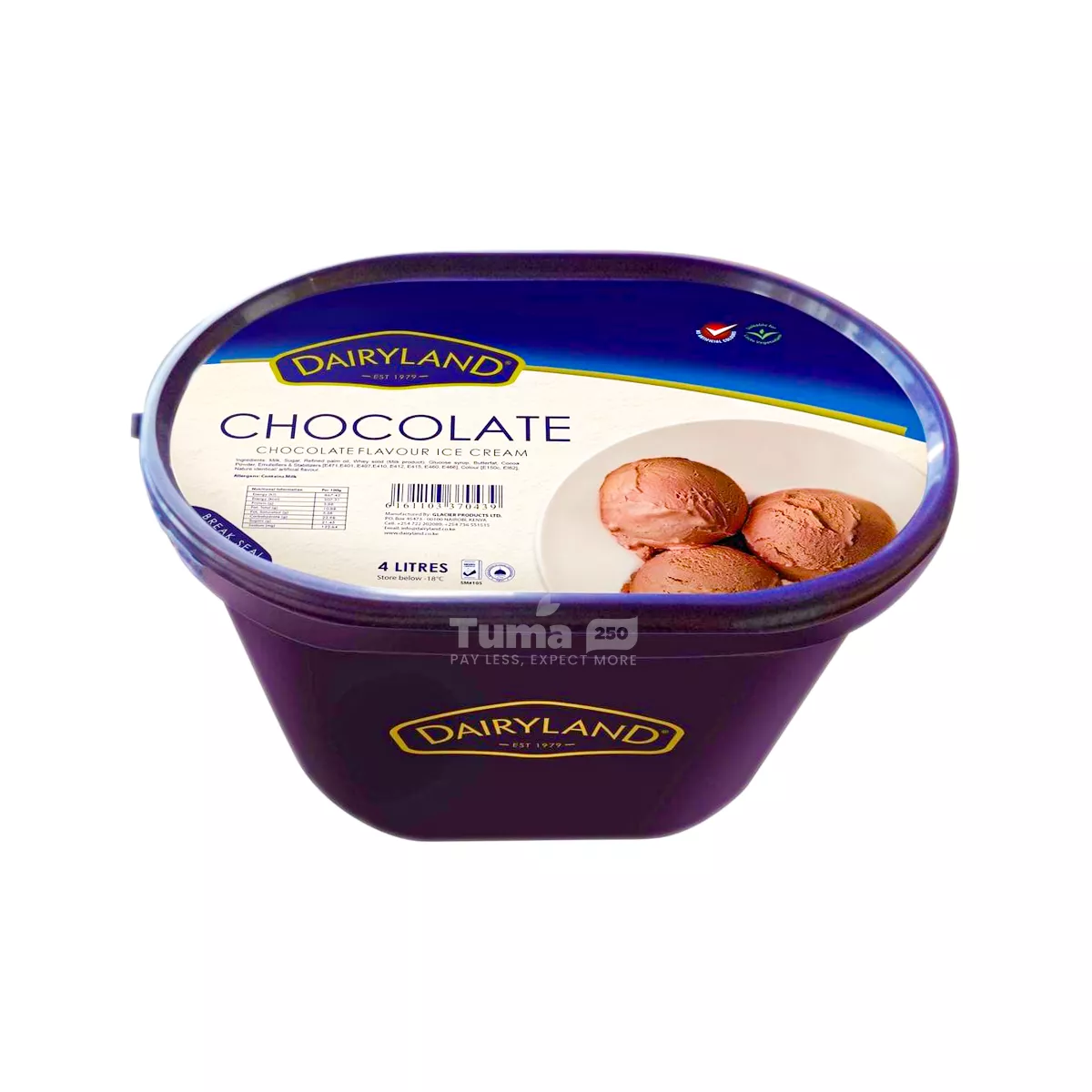 - Dairyland Chocolate Flavoured Ice Cream 4L is the ultimate treat for chocolate lovers and dessert admirers alike. Crafted with premium ingredients, this decadent and creamy chocolate ice cream elevates your dessert experience like never before. Whether it’s a family celebration, a gathering with friends, or a quiet night in, this 4L tub ensures there’s always enough deliciousness to go around.