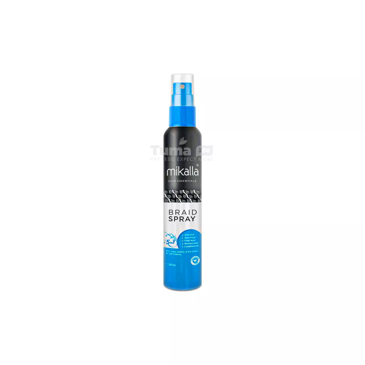 Mikalla Braid Spray 5-in-1 250ml is a multi-purpose hair spray designed to keep protective styles looking fresh and feeling comfortable. This 5-in-1 formula addresses the most common needs of braided hair while maintaining healthy hair and scalp.